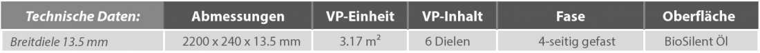 Vor allem in großen Räumen entfacht die Breitdiele mit 240 mm ihre volle Wirkung und betont den Raum besonders edel und ausdrucksstark. Sie verleiht Ihrem Raum ein unvergleichlich exklusives und natürliches Ambiente.