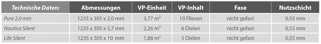 Somit können diese auch in den Ausführungen NauticoSilent und Pure problemlos im Bad verlegt werden.